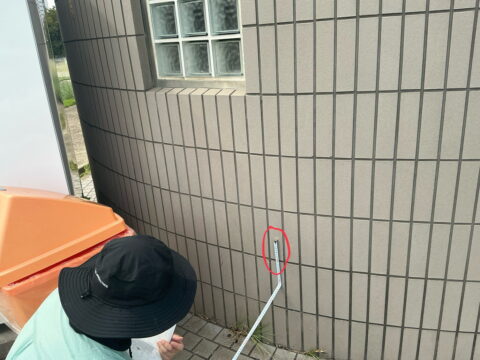 タイル部分は、打診棒を使ってタイルの浮きがないかを確認しながら、