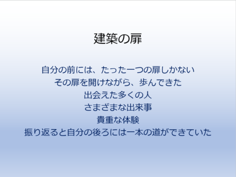 こうしてできたこの道を、この先も一歩一歩進んでいきたいと思います。